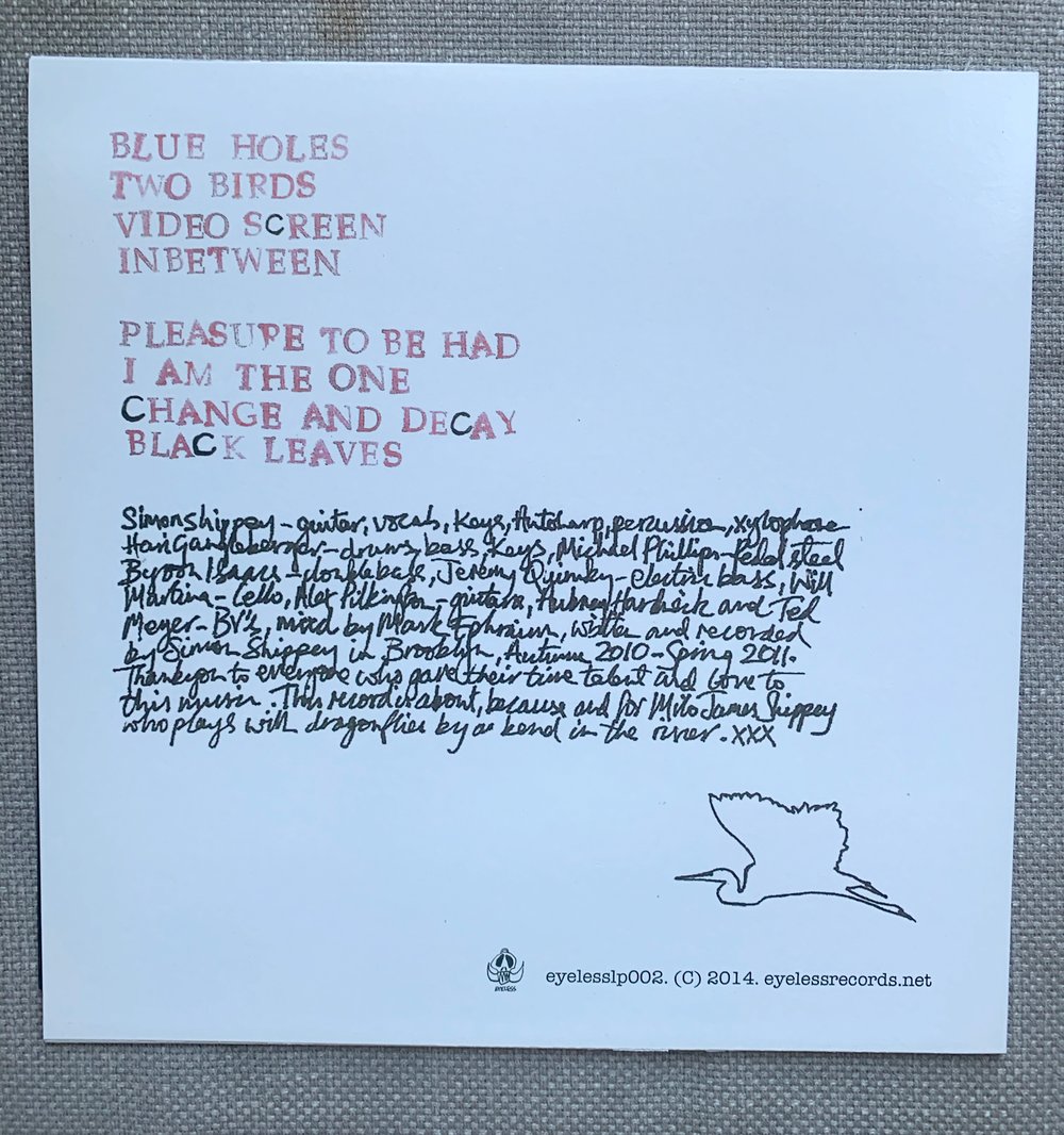 Written and recorded Simon Shippey (Custom Blue) in Brooklyn and mixed by Mark Ephraim. Peace For Old Ghosts debut LP finally arrives after a trio of beautiful ltd CDR releases on Eyeless and self releases by Simon Shippey himself. Simon has managed to wrestle and discover great depths of beauty and sophistication in his songwriting. The production and ensemble of players manage to capture the mood perfectly as each sound counter balance precisely between pain and release. The albums drifts in and out of cosmic folk, song and deep cataclysmic crescendos.